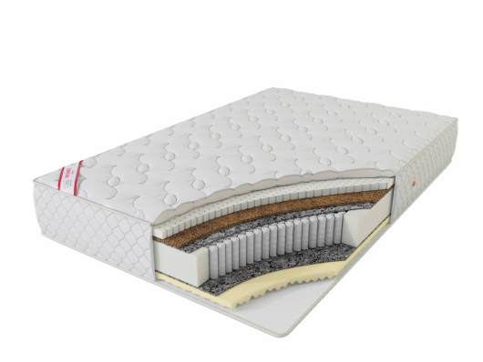 - Состав слоев (верхняя сторона): хлопковое термо волокно 3 мм, латекс h - 3 см. (Бельгия), кокосовая койра латексированная h -1 см.