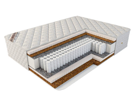 Высокий ортопедический матрас на основе блока независимых пружин с возможностью самостоятельного выбора требуемой жесткости. Натуральные наполнители матраса: натуральный латекс и кокосовое волокно, экологически чистые и долговечные природные материалы.