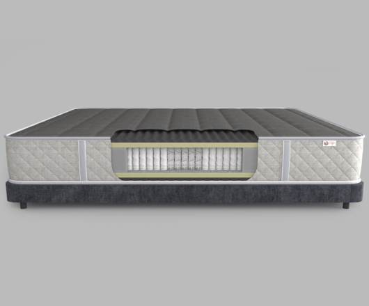 В основании модели имеется пружинный блок Multipocket (500 пружин на м²) с усилением по всему периметру из пенополиуретана. Для комфортного отдыха изделие усилено слоями из ППУ марки HR 3030 с рельефной "дышащей" текстурой, что обеспечивает отличную поддержку осанки во время сна.