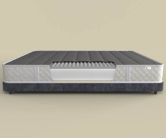 В основании модели имеется пружинный блок Multipocket (500 пружин на м²) с усилением по всему периметру из пенополиуретана. Для комфортного отдыха изделие усилено слоями из ППУ марки HR 3030 с рельефной "дышащей" текстурой, что обеспечивает отличную поддержку осанки во время сна.