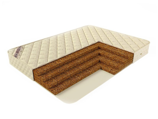 Жесткий беспружинный матрас Консуэль сделан из четырех одинаковых слоев натуральной кокосовой койры. Матрас идеально подходит для людей, которые любят спать на жестком матрасе, он рассчитан на нагрузки до 100 кг на спальное место. Чехол матраса выполнен из качественного хлопкового жаккарда.