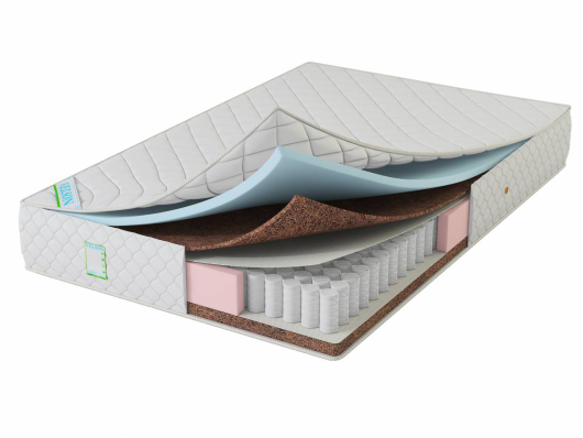 - Состав слоев (верхняя сторона): хлопковое термо волокно 3 мм, эрголатекс (PPU HR3030) 2 см, кокосовая койра латексированная h -1 см.