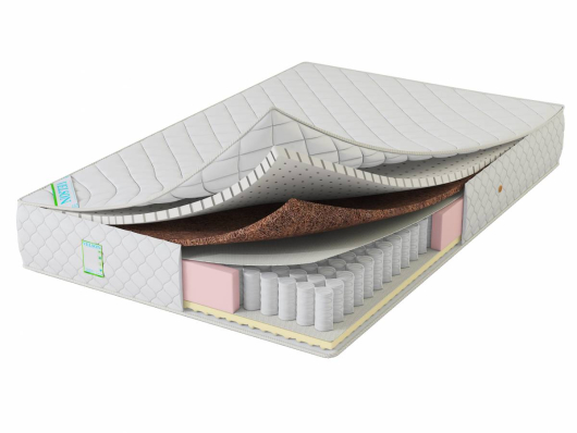 - Состав слоев (верхняя сторона): хлопковое термо волокно 3 мм, латекс h - 2 см (Бельгия), кокосовая койра латексированная h -1 см.