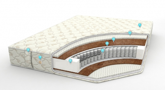 Ортопедический матрас «Рич» на основе независимого пружинного блока TFK-256 (EVS-500), относится к серии «Комфорт». Матраc на основе блока независимых пружин имеет ортопедический эффект , высокую плотность т.к. каждая пружина реагирует на вес и матрас идеально повторяет контур тела. В наполнении данного матраса используются следующие компоненты: латекс натуральный перфорированный высотой 20 мм с обеих сторон, кокосовая плита 10мм с двух сторон, спанбонд, ППУ по периметру.