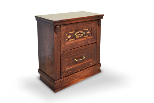 Тумба Лирона из массива сосны с резным фасадом и оригинальными ручками под состаренную бронзу понравится любителям классики и натурального дерева. Станет интересным дополнением вашего интерьера. Мебель из массива актуальна во все времена и добавляет уюта в интерьер.