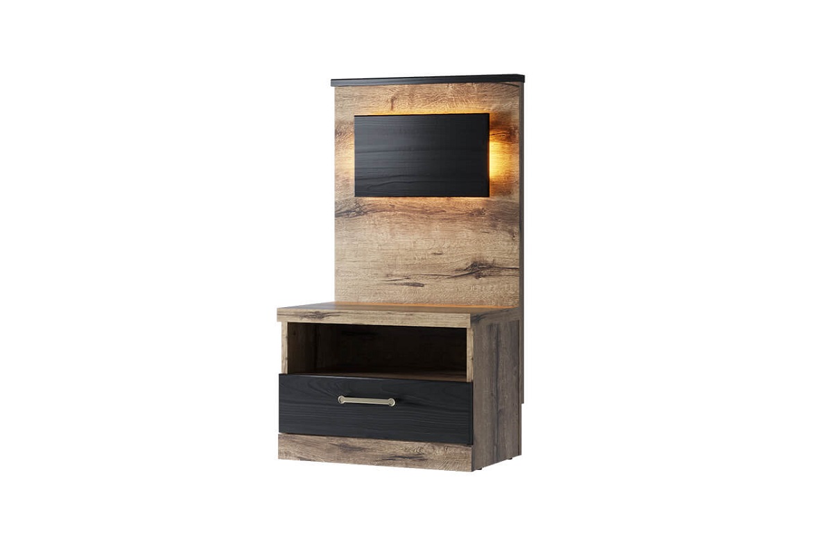 Тумба прикроватная 1S Джаггер прекрасно дополнит интерьер спальной комнаты, а также позволит держать около кровати все необходимые предметы. Вместительный выдвижной ящик пригодится для размещения интересной книги, маски для беззаботного сна и ночного крема. На тумбе можно расположить ночник, семейную фотографию и будильник для раннего подъема. -