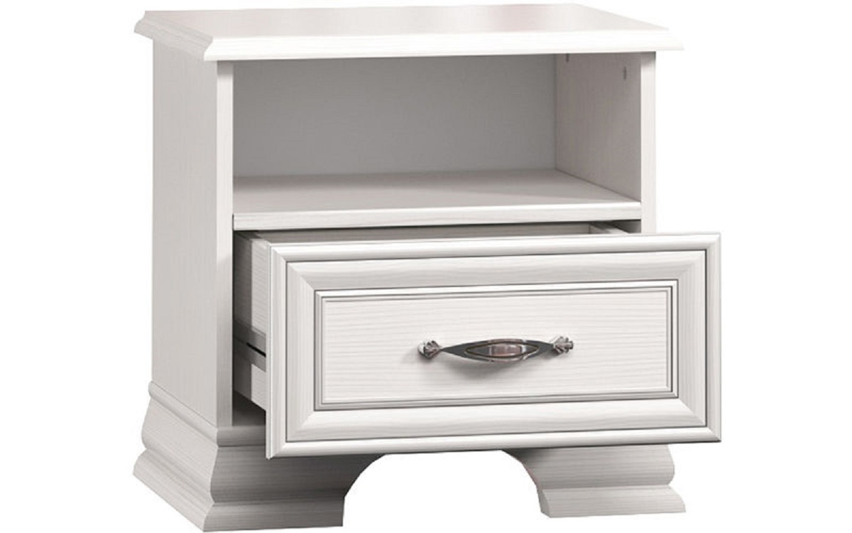 Тумба прикроватная 1S Тиффани станет незаменимым элементом для обустройства уютной спальной комнаты. Компактное изделие позволит держать все необходимые предметы около кровати. Тумба оснащена вместительным выдвижным ящиком и нишей, в которых можно разместить книгу для чтения перед сном, ночной крем или маску для спокойного сна. На тумбе будет отлично смотреться светильник, ваза с цветами или фотографию любимой семьи. -