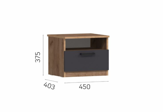 Тумба прикроватная Эконика представляет собой конструкцию в минималистическом стиле. Отличается практичностью, красотой и простотой. Изделие состоит из выдвижного ящика и вместительной ниши, в которых можно разместить все необходимые для Вас вещи. Тумба идеально подойдет под минималистический интерьер комнаты, а сочетание цвета "антрацит" с имитацией текстуры дерева создаст располагающую к отдыху атмосферу. -