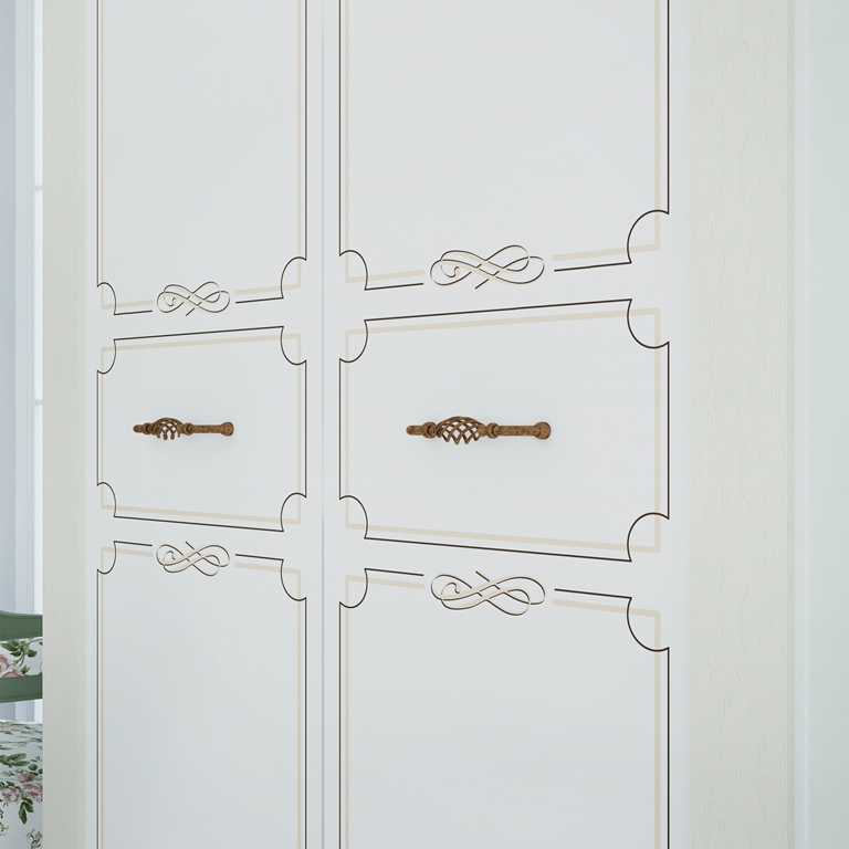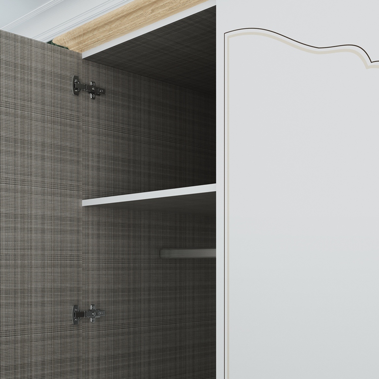 Шкаф двухдверный Элен мод № 6 поможет создать уютную и комфортную атмосферу в вашей спальне. За распашными дверьми расположено широкая штанга для вешалок-плечиков и две полки, которые пригодятся для размещения одежды, белья и других необходимых вещей. Мебель Элен - это сочетание классического стиля с элементами прованса, который отличается изяществом, практичностью, домашним уютом и создает атмосферу, располагающую к отдыху.