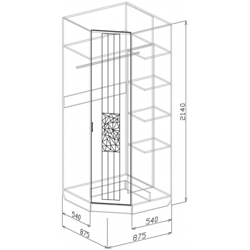 Ширина, мм 880 Глубина, мм 880 Высота, мм 2140 ?МатериалМатериал изготовленияЛДСП, МДФ Производитель Вариантов исполнения 1 -