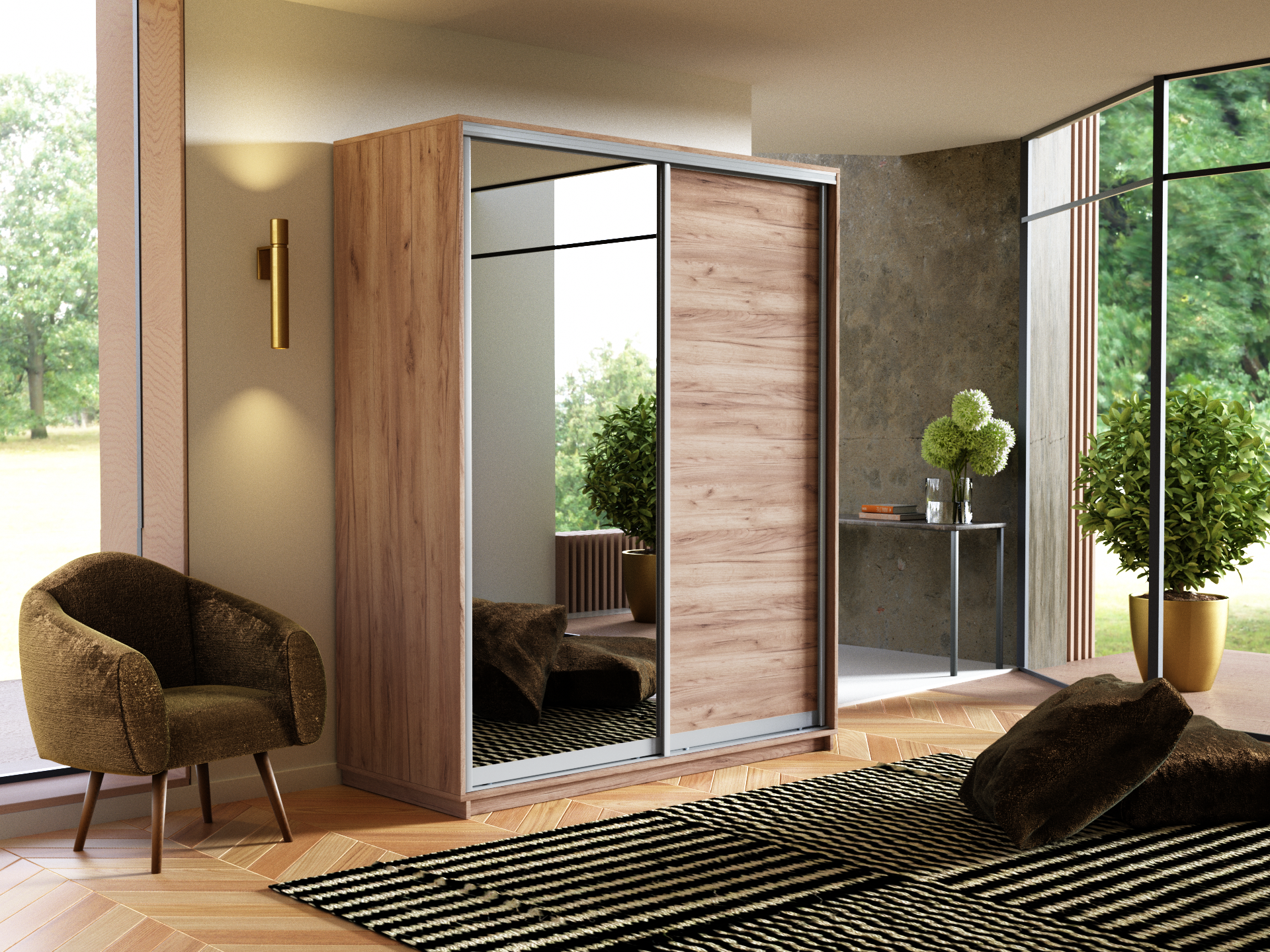 Шкаф-купе 2-х дверный Медиум подойдет тем, кто ищет вместительный шкаф-купе без излишеств. За двумя раздвижными дверьми находятся штанга для вешалок-плечиков с верхней одеждой, красивыми платьями, деловыми костюмами и другой безупречно выглаженной одеждой. Полки пригодятся для размещения другой сложенной одежды, белья, всевозможных аксессуаров и коробок с обувью.