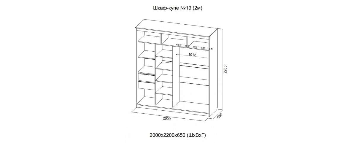 Размеры: Ш2000/1700/1500 х Г650 х В2200 мм