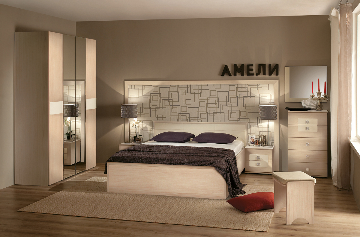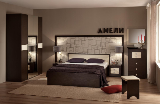 Спальня Амели (вариант 1) выполнена в современном стиле. Данная комплектация принесет в вашу спальню комфорт, уют, красоту и тепло. Такой набор несомненно впишется в любой интерьер комнаты, а также поразит вас своей практичностью, функциональностью и своим дизайном.