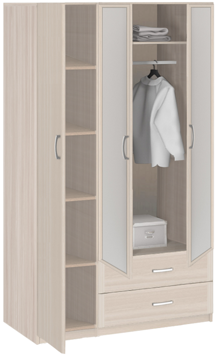 - Шкаф 3-х дверный с ящиками Лотос 8.031 с зеркалом Ш1255 х Г540 х В2380 мм