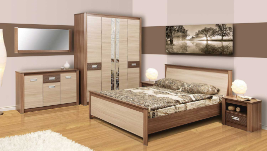Спальня Стелла 1 интересная и недорогая модель. Кровать имеет полноценное спальное место. Шкаф можно дополнить полками. Спальня Стелла исполняется в двух тонах. Эта коллекция