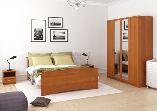 - шкаф четырехстворчатый Диона - Ш1600 х Г500 х В2140 мм.Спальня Диона идеально подойдет для интерьера вашей комнаты. Широкое и достаточно комфортное спальное место кровати поможет расслабиться после трудных дней, отдохнуть и набраться сил. Высокое изголовье предоставит возможность перед сном удобно расположить и почитать интересную книгу или посмотреть новый фильм. Прикроватные тумбы позволят держать около кровати все необходимые вещи. Сверху на тумбе можно разместить небольшой светильник, семейную фотографию и часы для своевременных подъемов. За двумя центральными распашными дверьми шкафа находится широкая штанга для вешалок-плечиков, а антресольная и полки, скрытые в боковых частях шкафа, пригодятся для размещения сложенной одежды и других предметов гардероба. Мебель Диона является экономичным вариантом при обустройстве оптимального пространства спальни.