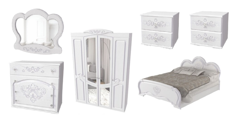 Спальня Филадельфия обеспечит комфорт и уют в вашей комнате. Изделие с широким и достаточно удобным спальным местом позволит после трудных дней расслабиться, отдохнуть и набраться сил. Изголовье кровати поможет комфортно расположиться перед сном и почитать увлекательную книгу или посмотреть фильм на планшете. Во вместительных выдвижных ящиках прикроватных тумб вы сможете разместить интересную книгу для чтения перед сном, ночной крем и маску для беззаботных сновидений. Косметический стол с зеркалом помогут создать укромный уголок для нанесения масок и кремов, макияжа и создания причесок, а также для хранения всевозможной косметики и разнообразных аксессуаров. За четырьмя распашными дверьми шкафа скрывается достаточно вместительное пространство для аккуратного хранения вашего гардероба. Широка штанга создана для вешалок-плечиков с верхней одеждой, красивыми платьями и деловыми костюмами. Полки пригодятся для размещения другой одежды, белья, головных уборов, разнообразных аксессуаров и коробок с обувью. Зеркало во всю высоту поможет подобрать безупречный образ для любого события. Комод вместе с зеркалом создают укромный уголок для наведения красоты и хранения косметики. Коллекция Филадельфия с изящным перламутром королевского жемчуга и сиянием бриллиантов привлекает внимание истинных ценителей качества и элегантной мебели в классическом стиле.
