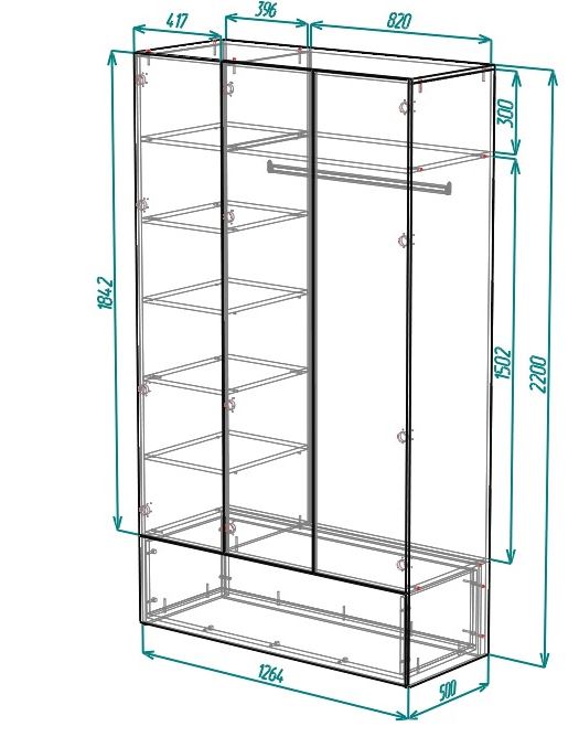 - Шкаф Астема (Ярофф) Ш1232 х Г516 х В2200 мм