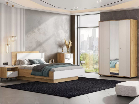 Сочетание древесного цвета с белым в интерьере спальни Милан создаёт атмосферу спокойствия и уюта. Спальня Милан создаст стильное и гармоничное пространство для отдыха и восстановления сил. -