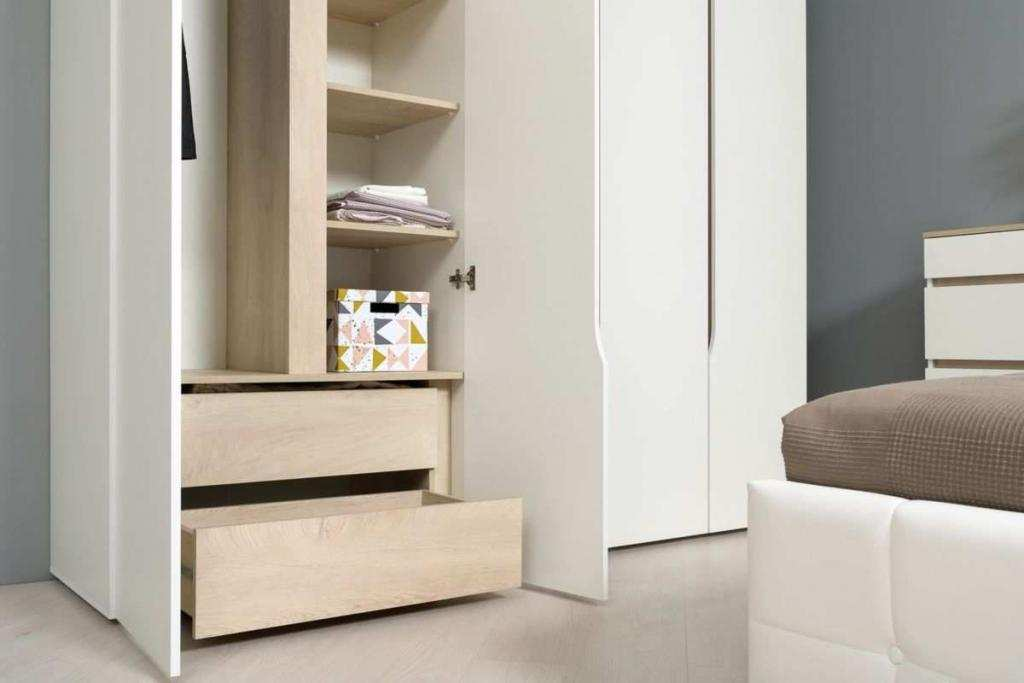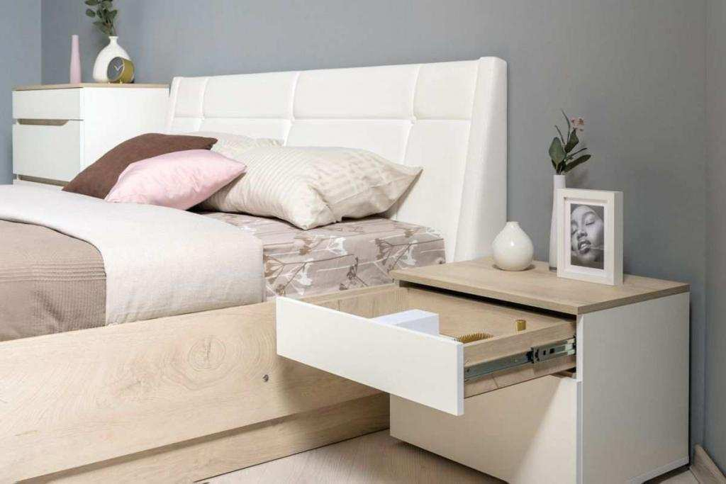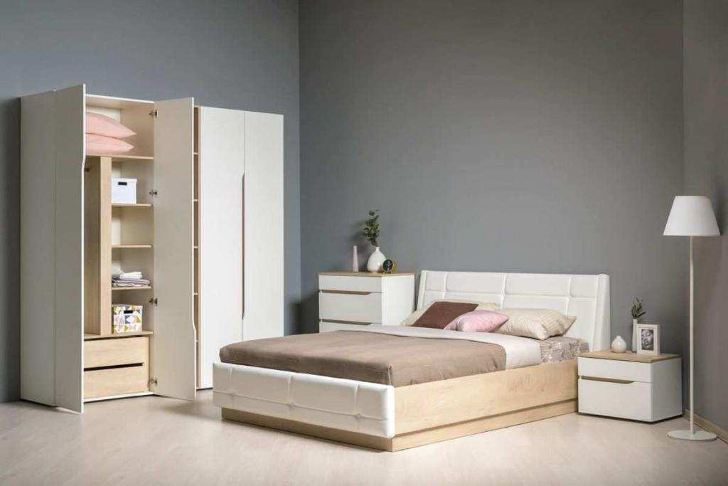 Модульный спальный комплект Муссон - отличный выбор для современных интерьеров. Кровать с мягким изголовьем, с ортопедическим основанием, подъемным механизмом и большим бельевым ящиком. Два двухстворчатых шкафа позволяют хранить каждому свою одежду. На стеллаже удобно будет разместить различные аксессуары и мелочи. Вместительный комод предназначен для постельного белья. Прикроватные тумбы с ящиками с обеих сторон кровати. Модульная спальня Муссон с белоснежными фасадами - практичное решение для вашей спальни. -