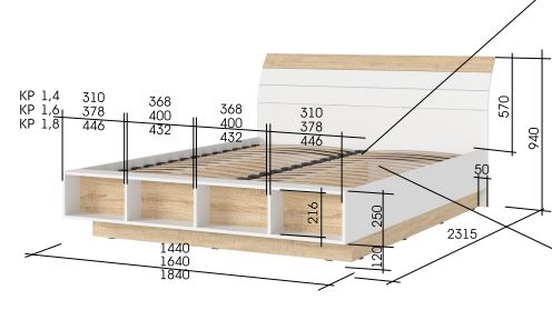Ширина, мм 1640 Глубина, мм 2315 Высота, мм 940 ?Спальное местоШирина х Длина в мм1600х2000 ?МатериалМатериал изготовленияЛДСП Производитель Вариантов исполнения 1 -
