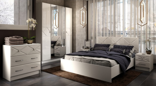 Спальня Севиль — это идеальное сочетание красоты, удобства и утонченности. Белоснежный цвет наполняет комнату ощущением свежести и спокойствия, благоприятствуя отдыху и расслаблению. Глянцевые поверхности отражают свет, визуально увеличивая пространство и улучшая освещенность. Такая спальня Севиль смотрится роскошно и презентабельно, превращаясь в центр притяжения взглядов гостей. -