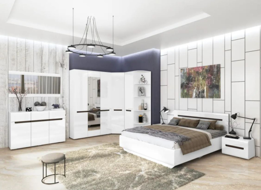 Спальня Стокгольм станет стильным дополнением вашего дома. Высокоглянцевые фасады придадут интерьеру стиль и пространство. Завершают внешний облик изделий удобные ручки - фурнитура, встроенная в фасад. Полновыкатные направляющие значительно удобнее, чем роликовые - они надежно зафиксированы и не выпадут при максимальном выдвижении. Выдвижные ящики комодов оснащены шариковыми направляющими и выдвигаются на всю глубину. -