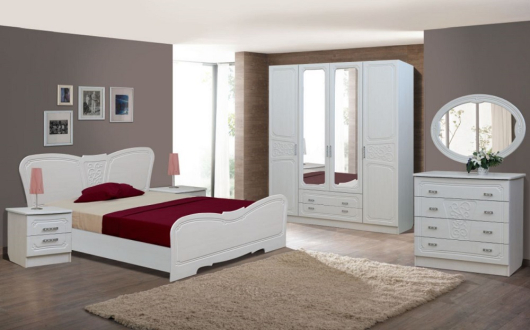 Спальный гарнитур в классическом стиле подойдет для любого интерьера. Он включает в себя шкаф, в котором можно разместить весь Ваш гардероб, функциональный комод и большую кровать с ортопедическим основанием. -