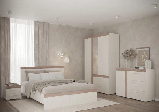 Спальня Вена выполнена в светлых тонах с тёмными вставками. Фасады имеют интересный дизайн, что придаст интерьеру особый шарм.Ящики имеют механизм полного выдвижения. -