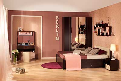 Спальня BERLIN в декоре Венге с элементами из контрастной белой кромки смотрится стильно и модно. Благородная фактура и неповторимые оттенки венге подчеркивают эргономичность модулей. Мягкое изголовье кроватей из винил.иск.кожи, прикроватные тумбы с высокими бортиками — всё это даёт дополнительное ощущение покоя и защищенности. Все кровати коллекции BERLIN могут комплектоваться как обычным основанием с гибкими ламелями, так и основанием с подъемным механизмом. Кровати с подъемным механизмом максимально экономят ценные квадратные метры, т.к. кроватная ниша — место для хранения, сопоставимое со шкафом. Как приятно, когда всё нужное под рукой. И как хочется, чтобы мелочи не портили интерьер! Совместить эти несовместимые желания поможет 35 Стол туалетный. За зеркальными створками трельяжа скрыт ряд стеклянных полочек. Здесь хватит места для баночек с кремами и любимых парфюмов. Под столешницей предусмотрены полочки со скругленными углами для высоких флаконов и для всего того, что ежедневно необходимо каждой женщине¸ но очень загромождает столешницу туалетного столика. Декоративная светодиодная подсветка 45 Доп. модуль для BERLIN 35 Стол туалетный привнесет таинственности в этот поистине женский предмет мебели. Стеллаж TWIST станет отличным дополнением интерьера Вашей спальни.