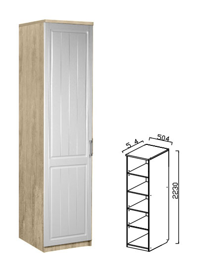 Шкаф-пенал Ивушка-10 Прованс прекрасно впишется в интерьер элегантной и стильной комнаты. Изделие предоставит достаточно места для бережного хранения всего вашего гардероба. За распашной дверью находятся четыре полки, созданные для бережного размещения одежды, постельного и нижнего белья, различных аксессуаров и коробок с обувью.