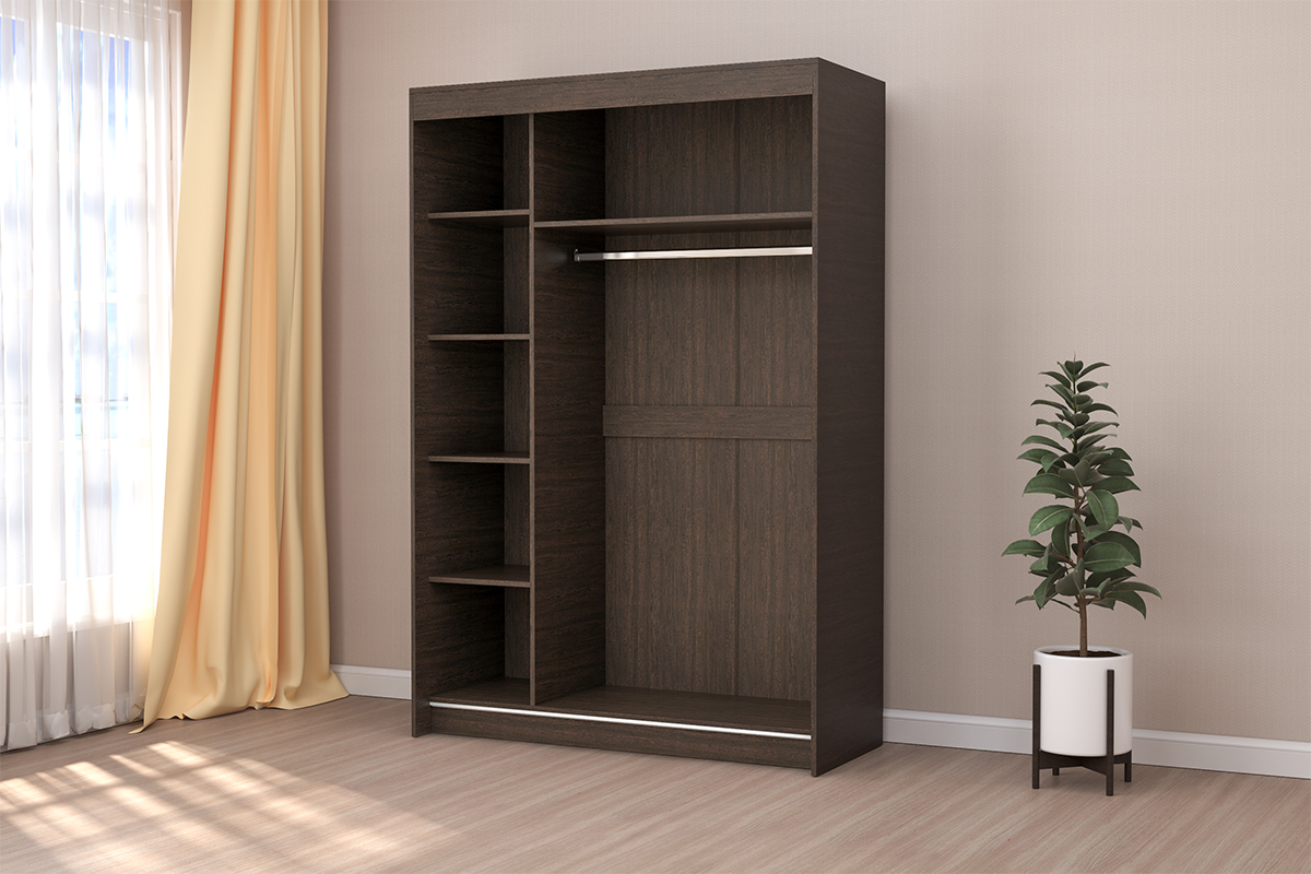 Шкаф-купе арт. 015 Кэт 7 станет отличным дополнением общего интерьера комнаты, а также поможет создать уютную атмосферу. В правой части шкафа находится штанга для вешалок-плечиков с одеждой, а полки, скрытые слева пригодятся для бережного хранения сложенной одежды, различных аксессуаров и коробок с обувью. Мебель Кэт 7 отличается стильной лаконичностью, сдержанностью и простотой.