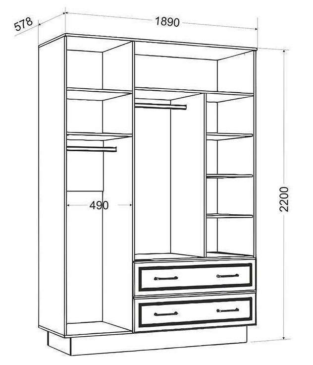 - Шкаф 3-х дверный Ханна М4 Ш1520 х Г581 х В2202 мм