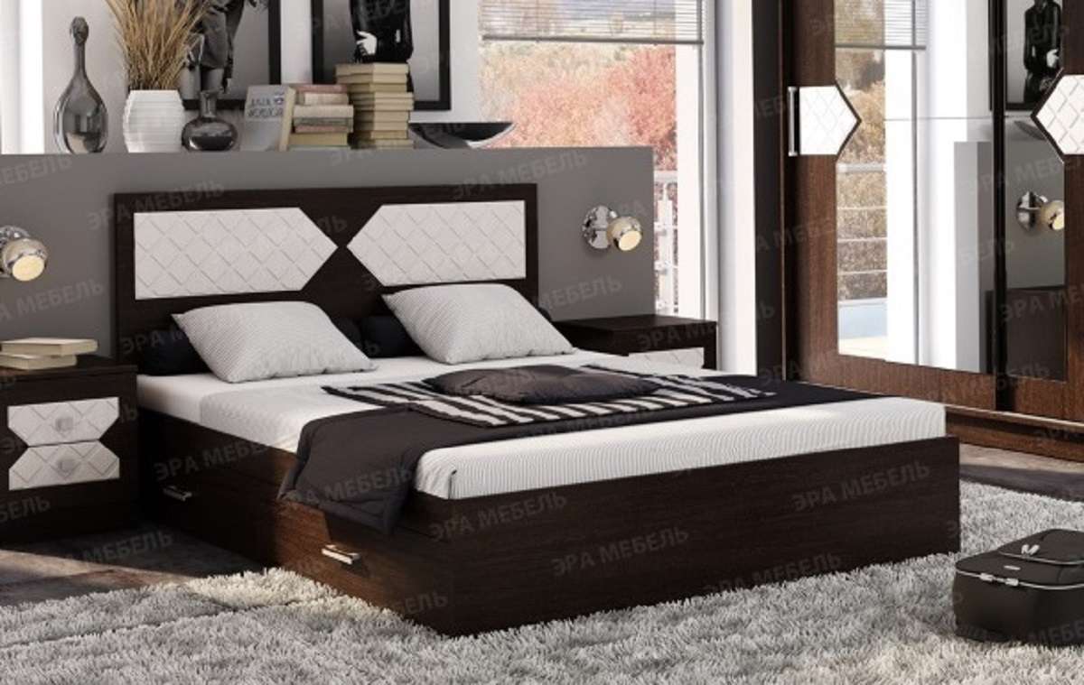 Кровать Николь — серия кроватей в современном дизайне. Модель изготовлена из ЛДСП, Дуб венге/Ясень шимо светлый + декоративные вставки из контрастного по цвету материала. Кровать укомплектована 2 выдвижными ящиками и настилом ДСП в основании спального места -