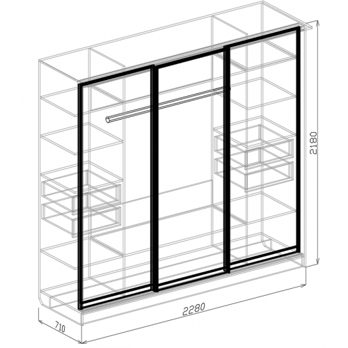 Размеры: Ш2280 х Г710 х В2180 мм.
