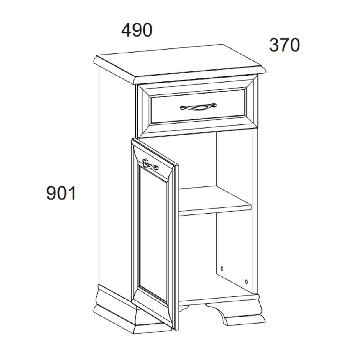 Ширина, мм 490 Глубина, мм 370 Высота, мм 900 ?МатериалМатериал изготовленияДСП, МДФ Производитель Вариантов исполнения 1 -