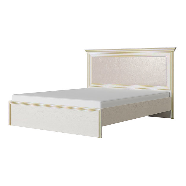 Кровать Венето станет прекрасным дополнением уютной спальни, в которой вы сможете отдыхать не только телом, но и душой. Изделие с достаточно комфортным и широким спальным местом поможет после трудного дня расслабиться и набраться сил. Высокая спинка со вставкой из кожи позволит удобно расположиться и почитать книгу перед сном. Респектабельный внешний вид мебели Венето достигается благодаря использованию классических карнизов, фасадных и рамочных декоративных профилей и фигурного цоколя.