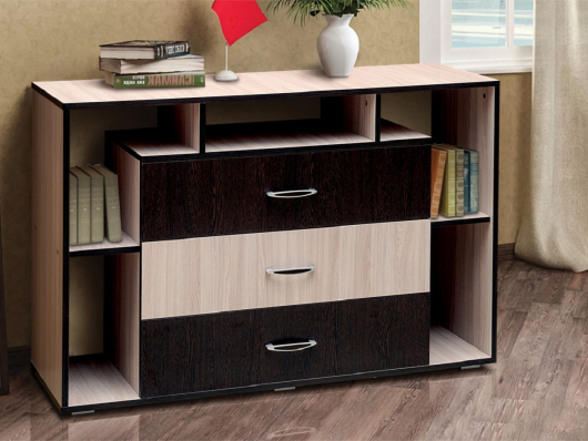 Комод Венеция 10 станет отличным дополнением и настоящим украшением для уютной комнаты. Такое изделие приятно удивит удачным сочетанием компактности и необычайной вместительности. Комод имеет широкие ящики, которые можно использовать для бережного хранения одежды, постельного и нижнего белья. Сверху Вы сможете разместить несколько семейных фотографий, вазу или вазон с красивыми цветами и другие оригинальные изделия. -