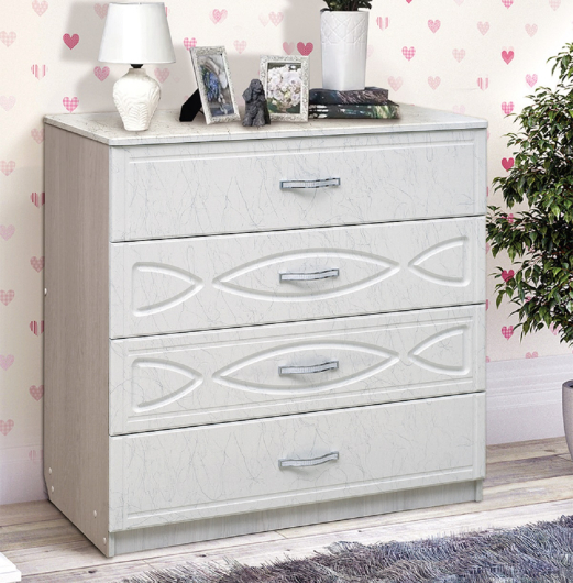 Комод Венеция 7 станет отличным дополнением и настоящим украшением для уютной комнаты. Такое изделие приятно удивит удачным сочетанием компактности и необычайной вместительности. Комод имеет четыре широких выдвижных ящика, которые можно использовать для бережного хранения одежды, постельного и нижнего белья. Сверху Вы сможете разместить несколько семейных фотографий, вазу или вазон с красивыми цветами и другие оригинальные изделия. -