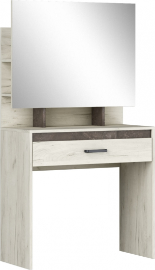 Стол макияжный Прага оснащен вместительным выдвижным ящиком и полками за зеркалом для размещения косметики, украшений и мелких аксессуаров. Данная модель идеально впишется в любой интерьер спальной комнаты, а также поразит вас своей элегантностью, практичностью и внешним видом. Мебель Прага актуальна и универсальна благодаря прямым и строгим линиям, трендовому дизайну модулей.