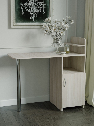 Стол маникюрный 2 гармонично впишется в интерьер как маникюрного кабинета, так и собственной спальни. Не смотря на название, изделие можно использовать в качестве туалетного стола. Большое количество открытых и закрытых полочек пригодятся для бережного хранения косметики и всевозможных аксессуаров. Широкая столешница позволит расположить все необходимое под рукой и делать различные уходовые процедуры.