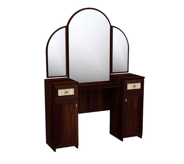 Стол туалетный 1 Милана оснащен двумя небольшими выдвижными ящиками, а за дверцами по бокам расположено по две полки для различных вещей. Большое зеркало необычной формы приятно удивит вас. Данная модель идеально впишется в любой интерьер спальной комнаты, а также поразит вас своей элегантностью, практичностью и внешним видом.