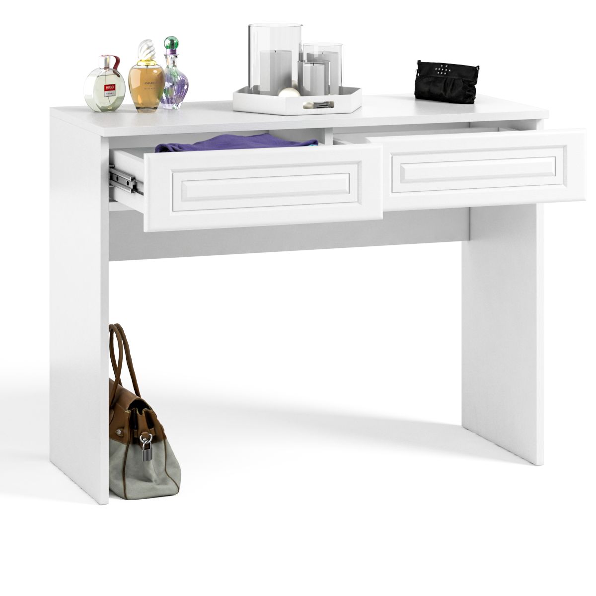 Стол туалетный с двумя ящиками Афина АФ-18 предназначен для спальни. Данная модель имеет компактные размеры. Столешница небольшая, но удобная для наведения красоты. Ящики можно использовать для хранения косметитки, укращений и аксессуаров.