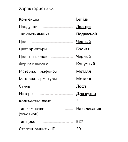 Люстра рассчитан для применения 3 источников лампочек. Каждая лампа имеет мощность 60 Вт. Соответственно, общая мощность модели будет составлять 180 Вт. При этом можно использовать источники света с цоколем E27. Люстра сможет осветить комнату площадью до 10 кв.м. В данной модели Globo источниками света должны быть лампы с типом "накаливания".