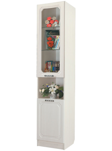 Пенал со стеклом Тиффани станет гармоничным и достаточно функциональным дополнением интерьера детской комнаты. Полки, скрытые за глухой дверью, можно использовать как для хранения одежды и белья, так и для книг и других школьных принадлежностей. На открытых полочках и за дверцей со стеклянной вставкой будут отлично смотреться любимые игрушки, заслуженные грамоты и медали, а также различные оригинальные предметы декора.