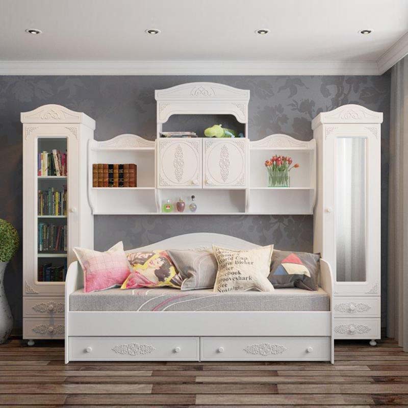 Детская Ассоль 9 прекрасно подойдёт для комнаты девочки. Белые, ажурные фасады украсят комнату и сделают её лёгкой и воздушной. Фасады мебели Ассоль изготовлены по новейшим технологиям. Такая мебель прослужит долгие годы.