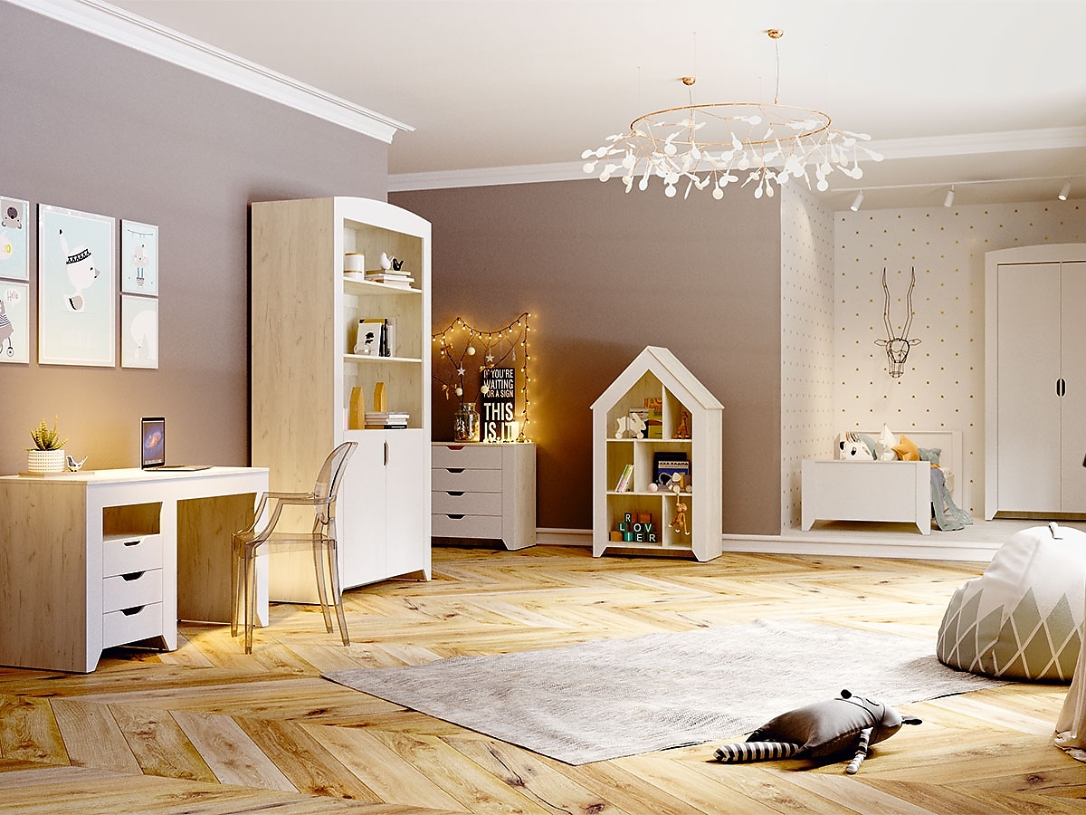 Отличительная особенность коллекции Буква – возможность персонализации выбранной мебели: за дополнительную плату вы можете заказать фрезеровку первой буквы имени вашего ребенка, с уникальным дизайном для девочки или мальчика. Фрезеровка будет присутствовать на фасаде одного из модулей.