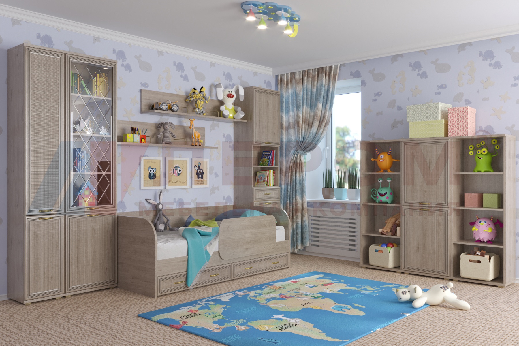 Этот комплект легко адаптируется под растущие потребности ребёнка — от дошкольника до школьника. Стеллажи и полки удобны для книг, игрушек и поделок, а многоцелевые шкафы справляются с сезонной сменой одежды и школьной формой. Благодаря светлым тонам (снежный ясень, серый кашемир) комната выглядит просторнее и светлее. Борт на кровати безопасен, когда малыш спит один. Шкафы глубиной 35 см — оптимальны для компактного хранения без перегруза. Всё крепится без лишних отверстий в стенах. За пару часов можно собрать, а через год — переставить — и будет выглядеть по-новому. Подойдёт и для девочек, и для мальчиков: нейтральный дизайн легко обыграть с помощью постеров или текстиля.