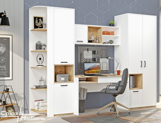 Детская Фокус 1 в сочетании с белым цветом и древесными оттенками, представляет собой стильное и функциональное решение для детской комнаты. Такое сочетание цветов придает интерьеру свежесть и естественность, а также обеспечивает уютную атмосферу. -