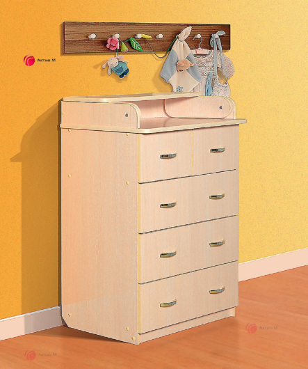 Комод с пеленальным столиком - верхняя часть комода представляет собой откидной столик, разложив который Вы получаете удобное место для ухода за своим малышом. -
